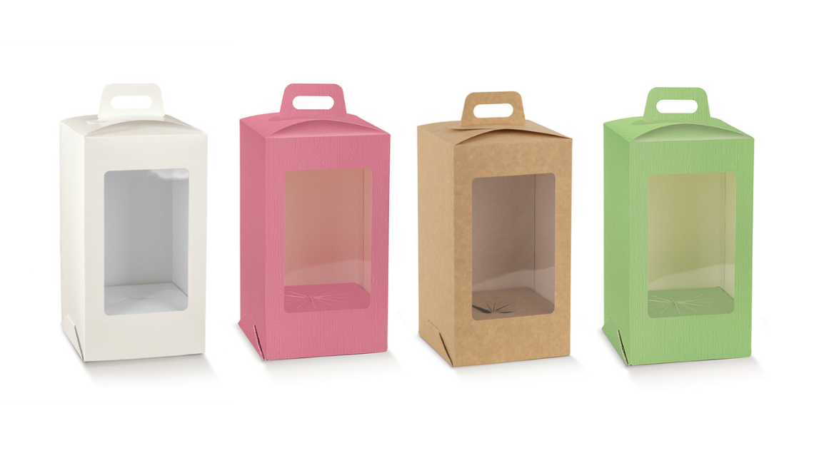 Dotata di comoda maniglia per il trasporto e finestra in PVC trasparente, permette di valorizzare l’uovo mostrando il prodotto all’interno e aumentando l’effetto sorpresa.