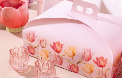 Scatola dalla forma classica con maniglia fustellata. Scopri tutta la nostra Collezione Tulips!